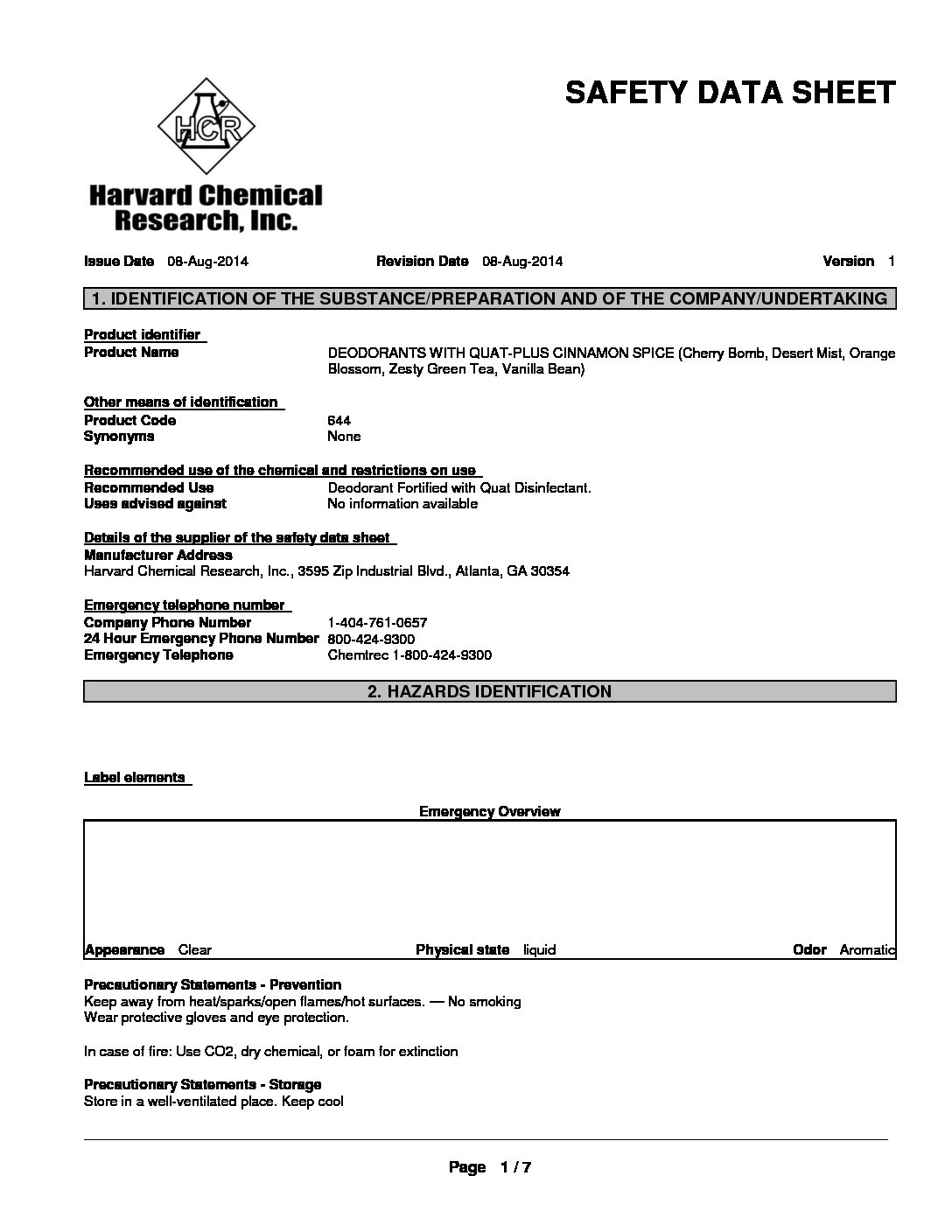 CINNAMON SPICE By Harvard Chemical